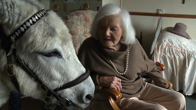 For five days Sarah Vanagt and cinematographer Annemarie Lean-Vercoe followed a donkey during its weekly visits to old people in nursing homes in England. From home to home, from room to room. Time and again the donkey was welcomed with open arms, with songs, gentle strokes, childhood stories, poems, and laughter. It was only when the donkey entered the room of Norbert, a man who had lost his ability to speak, that an altogether different encounter took place. Even though Vanagt initially followed the donkey?s steps in search of reminiscences brought about by the animal?s mute presence, she came home with an altogether different film. While editing, the film became shorter and shorter, as if the words that had accompanied the donkey?s visits became a distraction. What is left is perhaps a bas-relief disguised as a painting, disguised as a film. The donkey visits to residential homes are an initiative of The Donkey Sanctuary in Sidmouth, England.